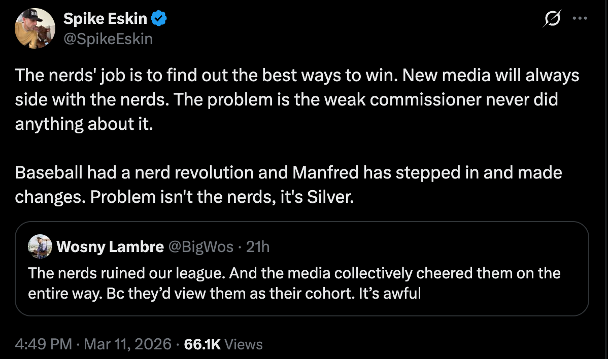As Spike suggests, the nerds are going to look for ways to ruin all our favorite sports. I can relate to the destructive impulse.