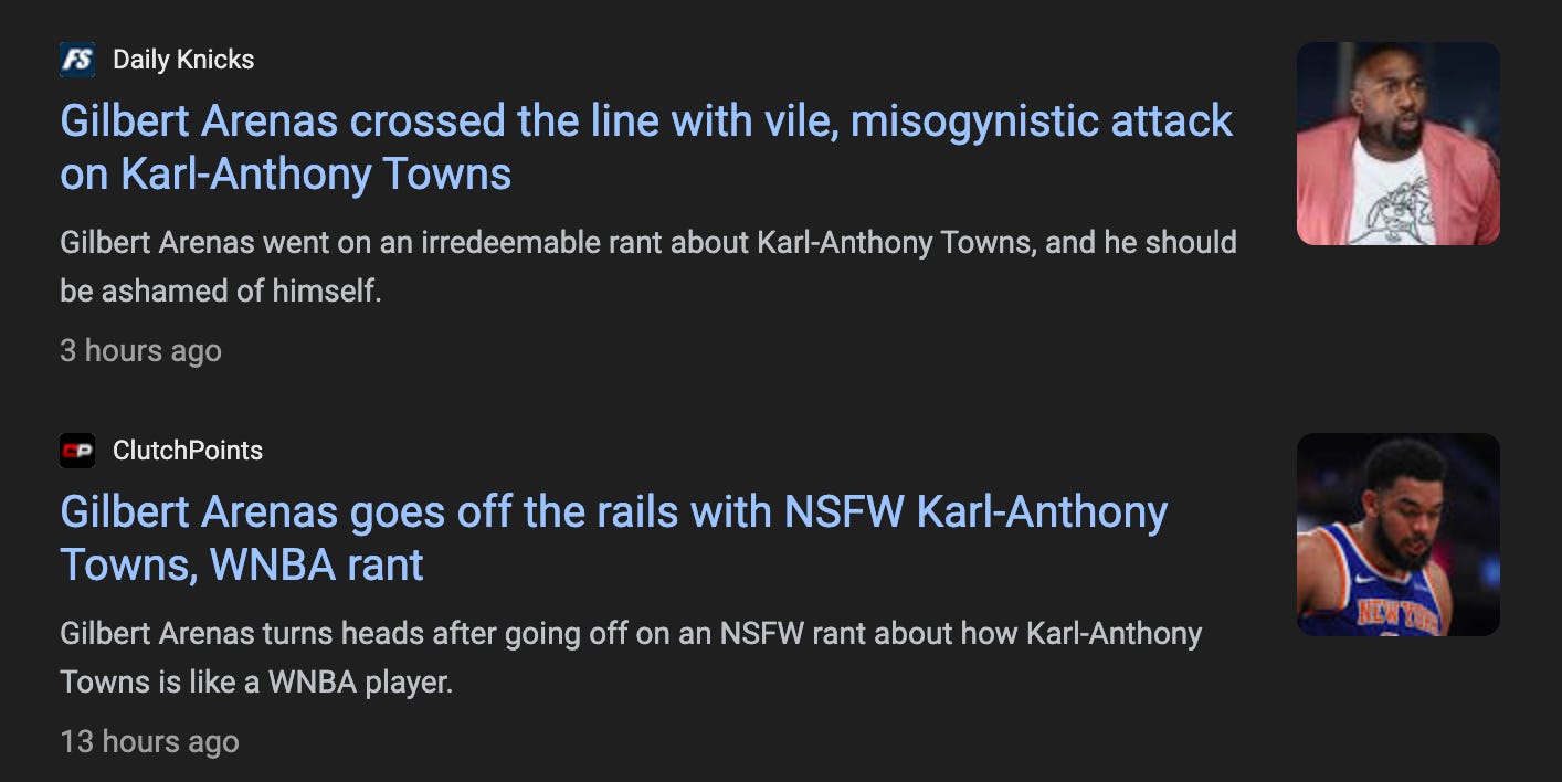 Gilbert Arenas incurred a lot of scorn for a podcast clip where he says that Karl Anthony Towns is “built like a whole fucking bitch.”