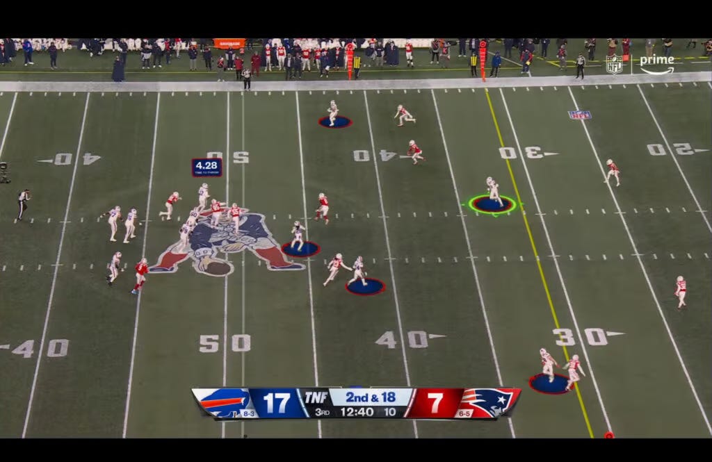 Amazon Prime offers a “Prime Vision” All 22 view that I happen to love for the reasons Daryl articulated. It’s not the “Madden View” behind quarterback, but instead a more distant angle, cluttered a bit with Amazon’s tracking bells and whistles on the players. I don’t foresee a near future where America becomes accustomed to voluntarily choosing this angle.