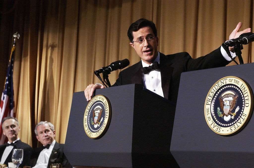 The dinner went viral back when “going viral” was still a fairly new term. The reason it was huge wasn’t merely that Colbert savagely embarrassed W., though he did. It was that, back then, there was still a prevailing sense of propriety around the presidential office. The Correspondents' Dinner was a moment of catharsis for the politicians and media who covered them, a time when humor was to briefly bridge a status gap between ruler and critic. What Stephen Colbert did just wasn’t done. As momentary court jester, he broke a convention, publicly rubbing W.’s nose in his failing second term. It was, believe it or not, brave. It was bold in a way that trashing Trump isn’t, even if Jon Stewart and others seek to now depict a new world order where every institution fears the current leader.